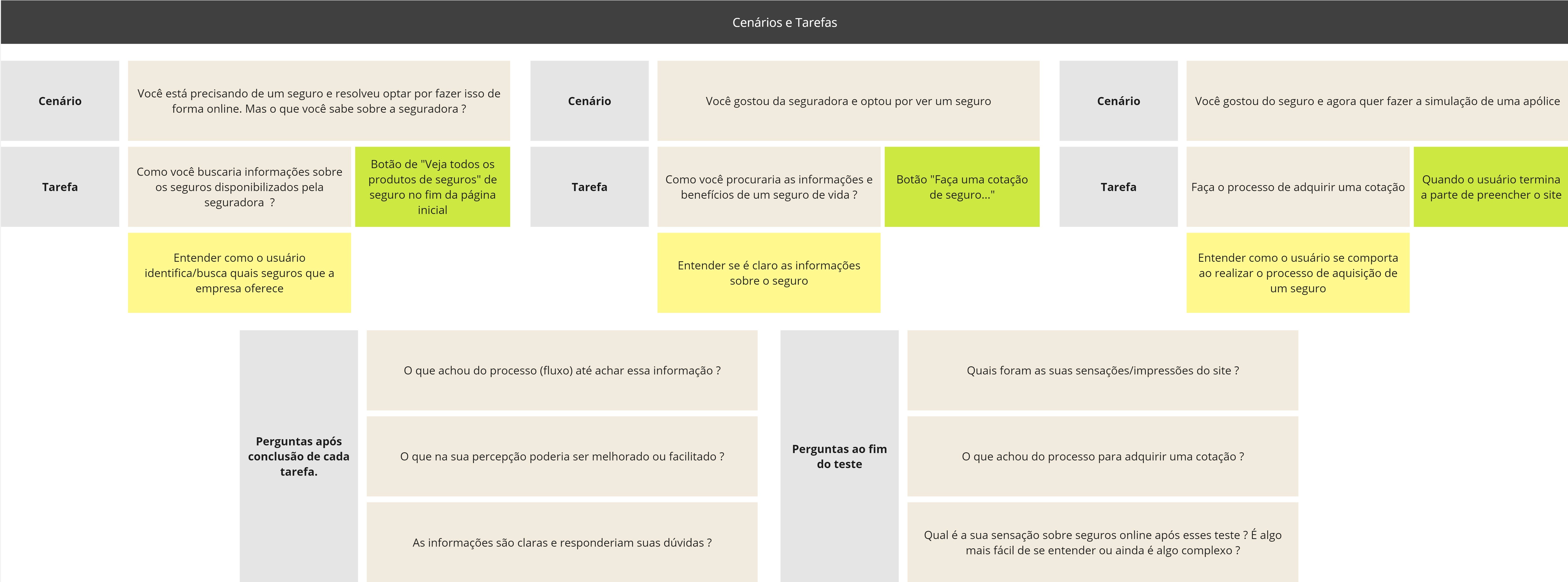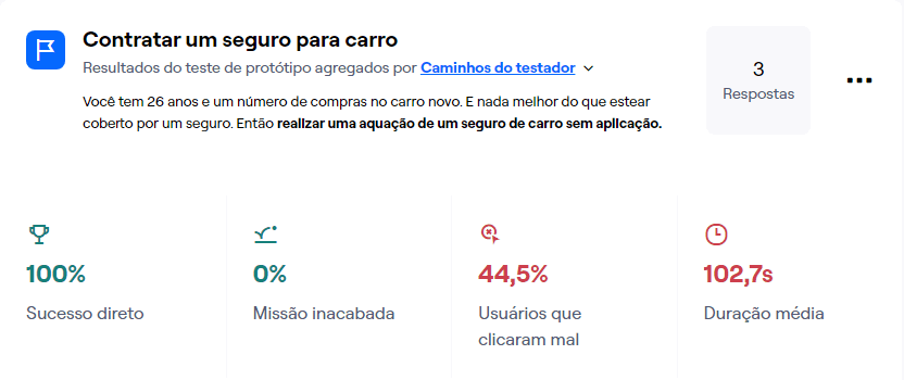 Avaliar se os usuários conseguem concluir as tarefas sem dificuldades, avaliar o acesso às informações dos seguros, como tipos de cobertura, valores e franquias e verificar se os fluxos do website fazem sentido para o usuário.