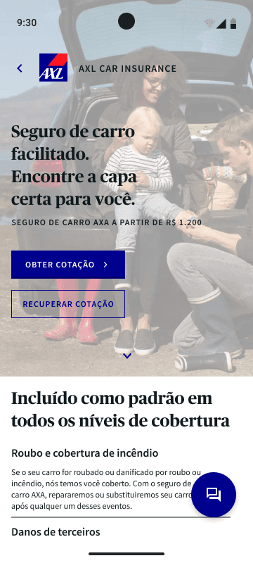 AXL é uma seguradora global com sede na França que possui uma ampla gama de produtos e serviços de seguros. A AXL concentra suas vendas pelo e-commerce onde possui em seu site mais de 590 mil acessos mensais, segundo o site similarweb.