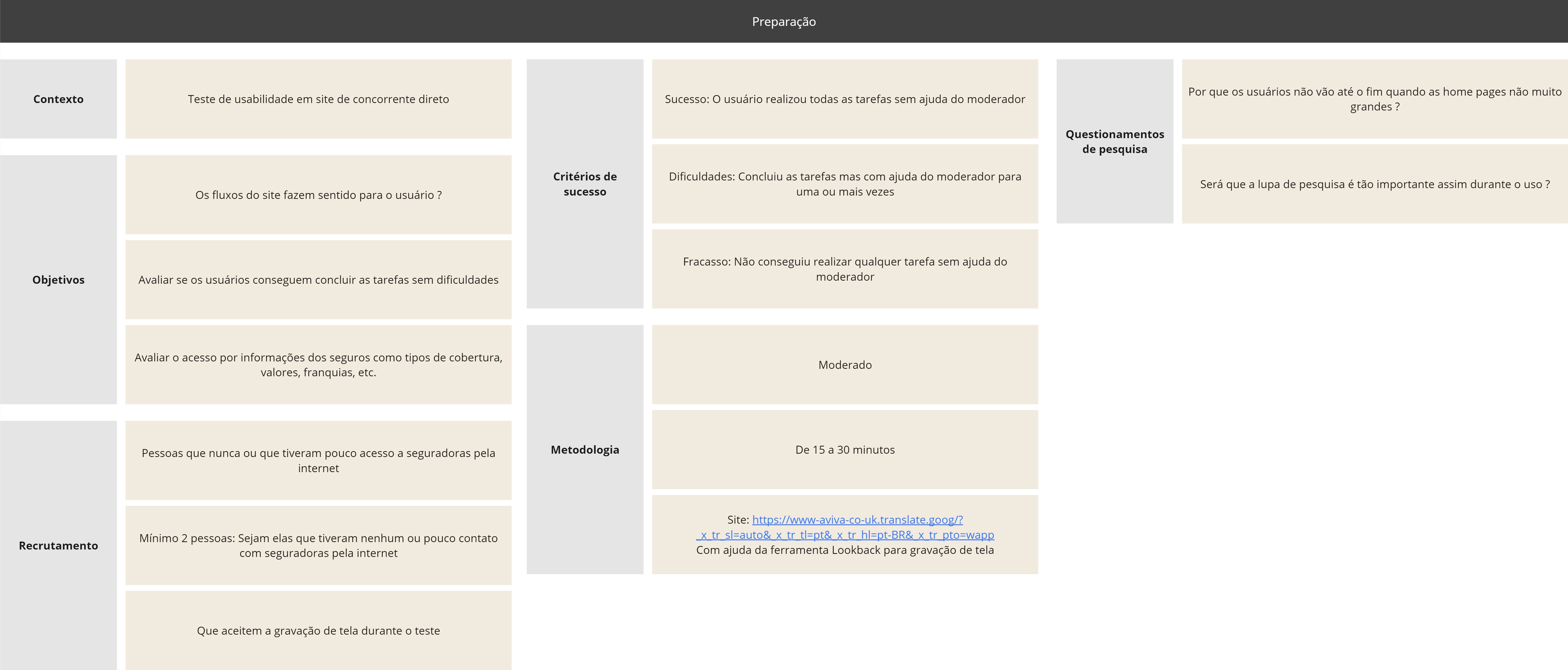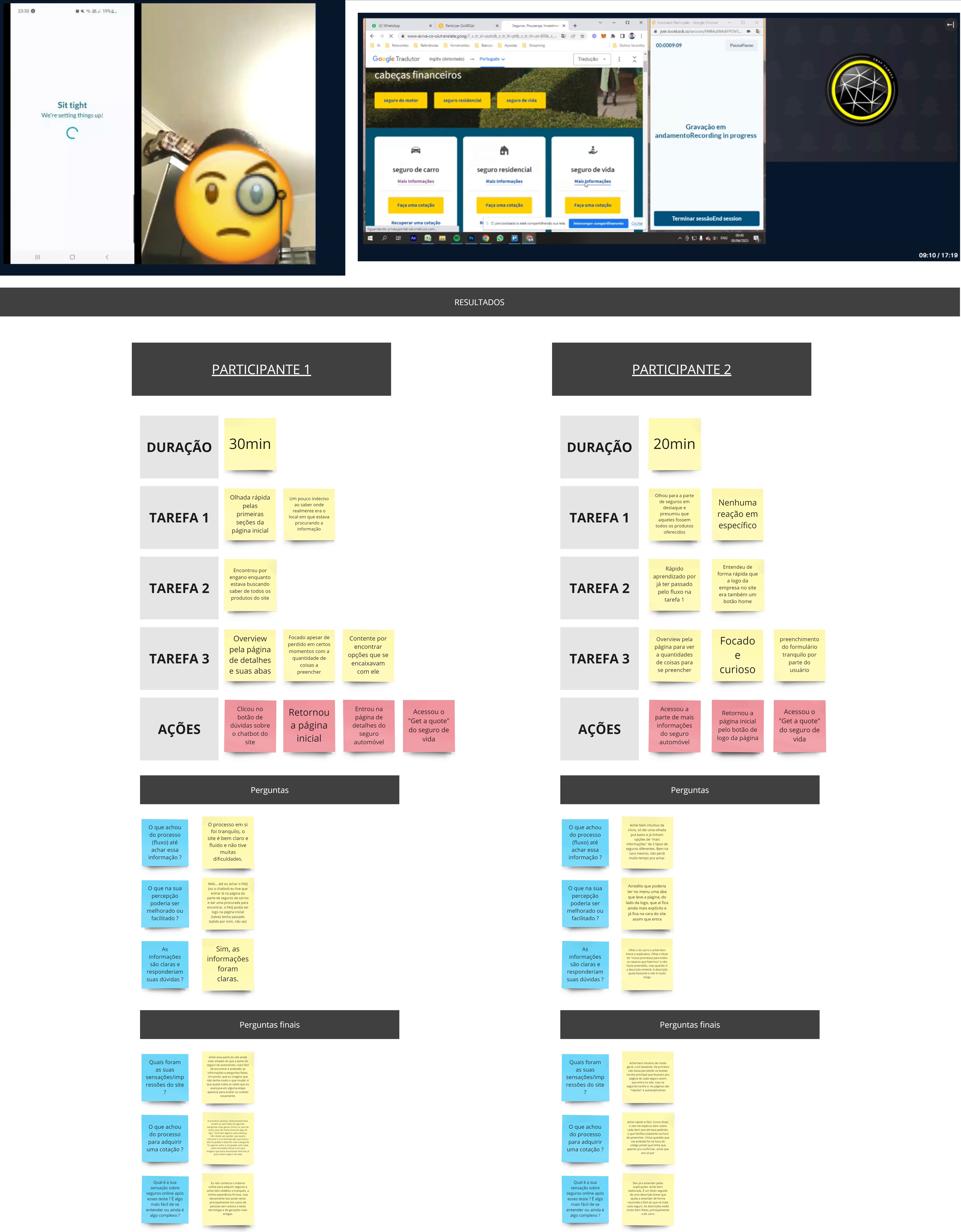 Foi realizado um teste de usabilidade moderado com a concorrente Aviva. O teste foi realizado com 2 usuários, executando 3 tarefas, com duração média de 25 minutos.