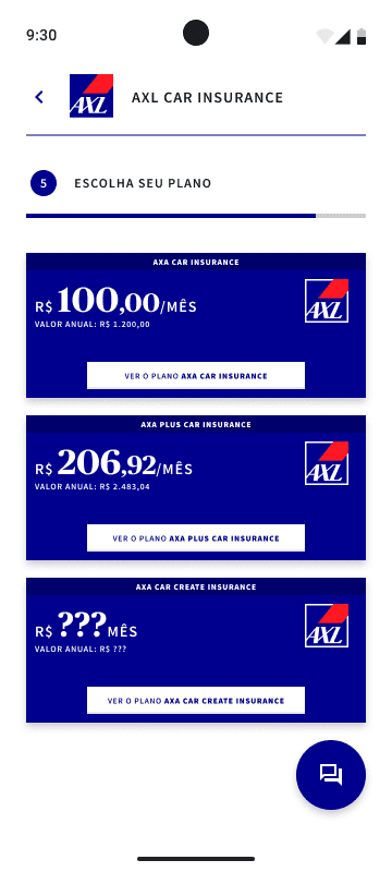 E com base no insight de que o preço é um fator importante e principal para 70% dos usuários, poderíamos assim desenvolver múltiplos planos de seguro e de forma comparativa.