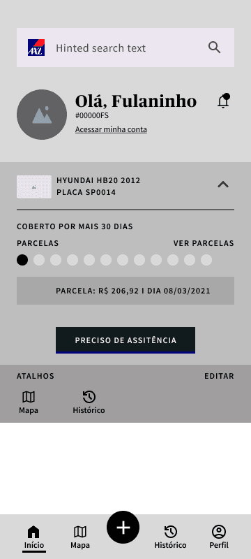 No wireframe, esbocei as telas do aplicativo seguindo as diretrizes de design já existentes no Foundations - AXA Design System, acompanhado do Google Material 3 Design Kit, com o objetivo de atender tanto aos padrões já utilizados na empresa quanto aos padrões do Android.