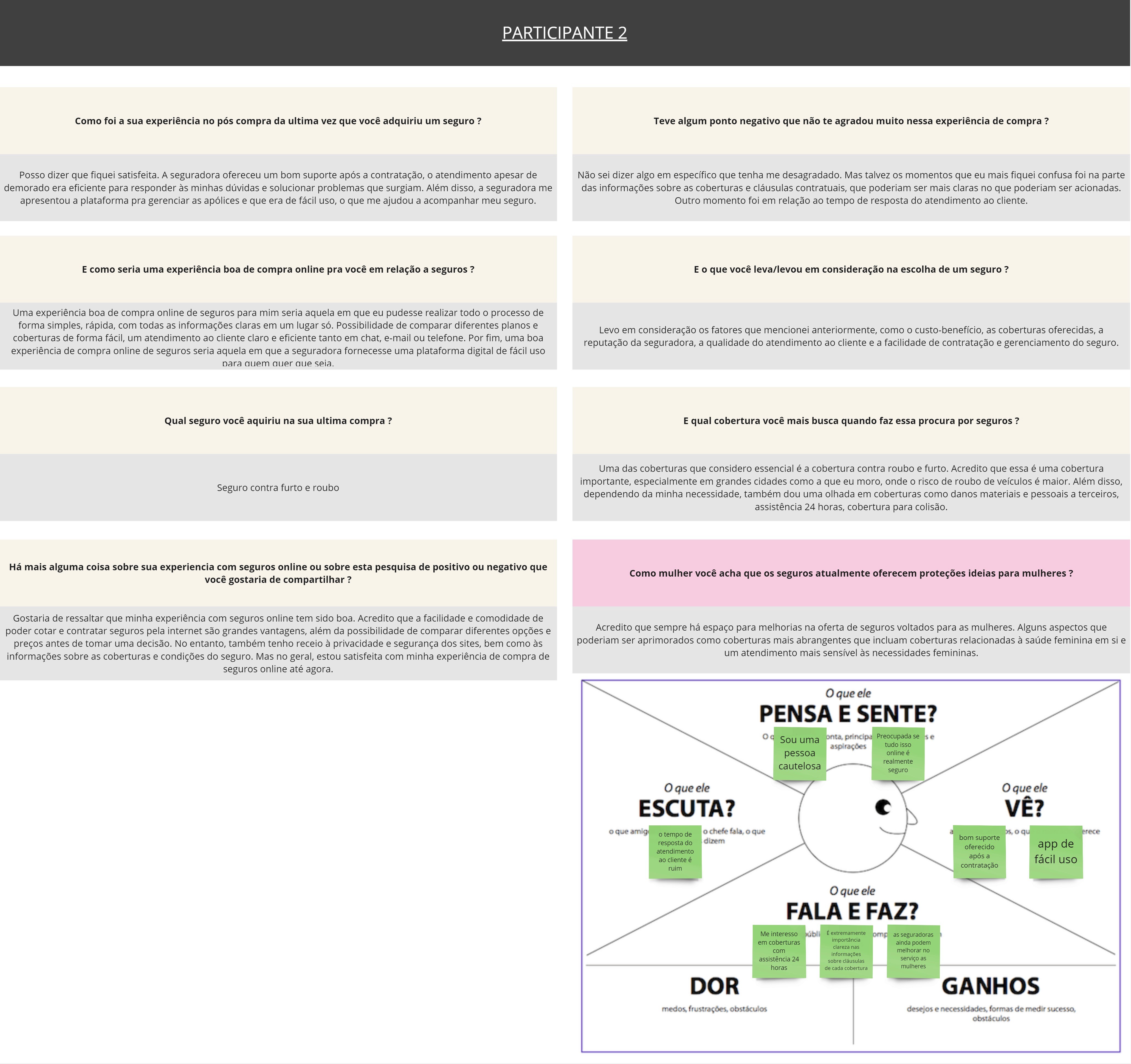 Entender de forma mais aprofundada o pensamento e a visão do usuário sobre seguro e compreender as preferências dos usuários.