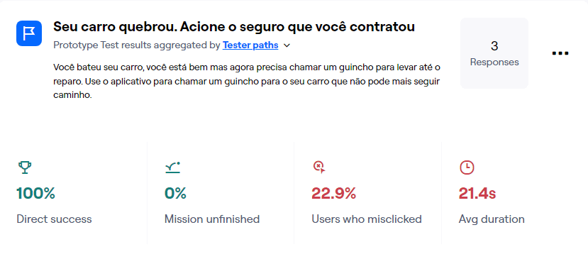 Para validar os wireframes e o fluxograma, foi realizado um teste de usabilidade não moderado pelo Maze.