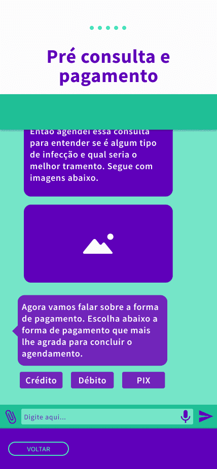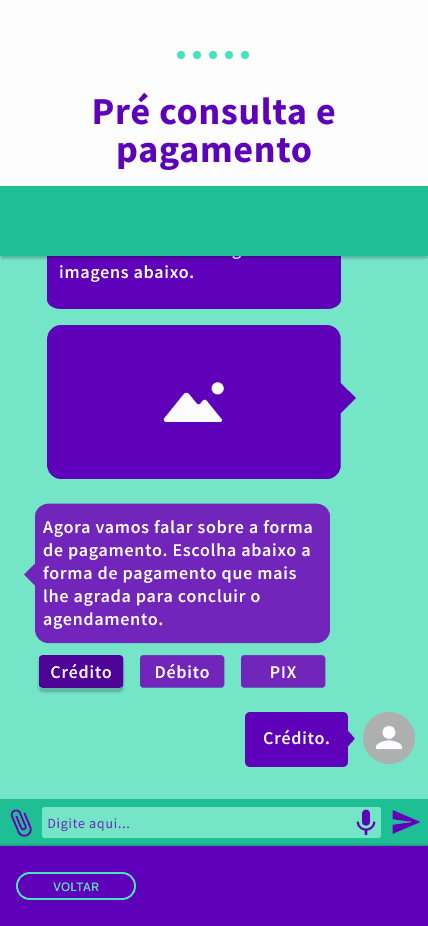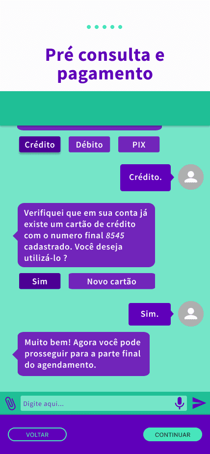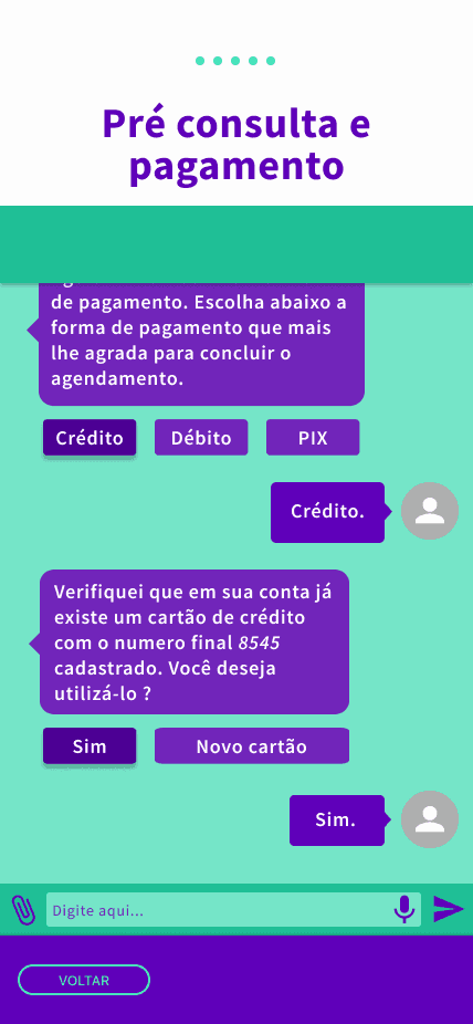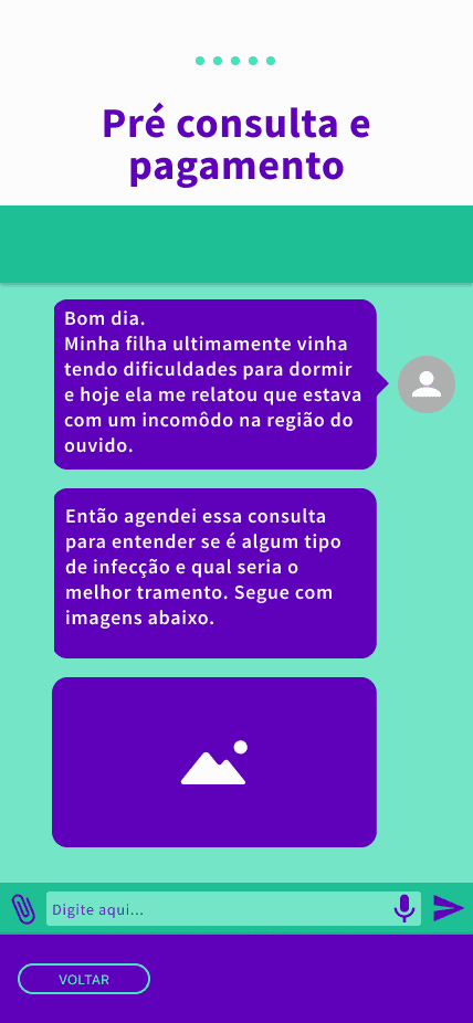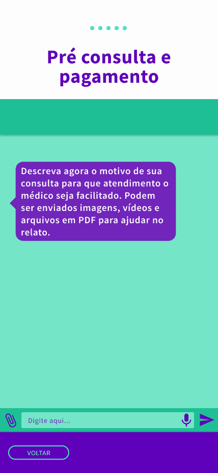 No momento de marcar uma consulta o usuário consegue em poucos cliques já se encontrar no chat de triagem para dar mais detalhes ao médico que irá lhe atender em breve. Chat esse que foi projetado com a ideia de ser similar aos aplicativos de mensagens bastante utilizados pelos brasileiros.