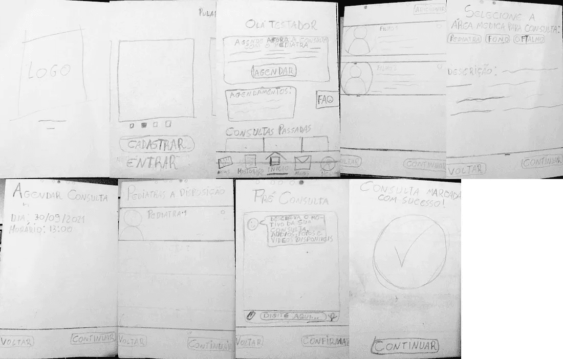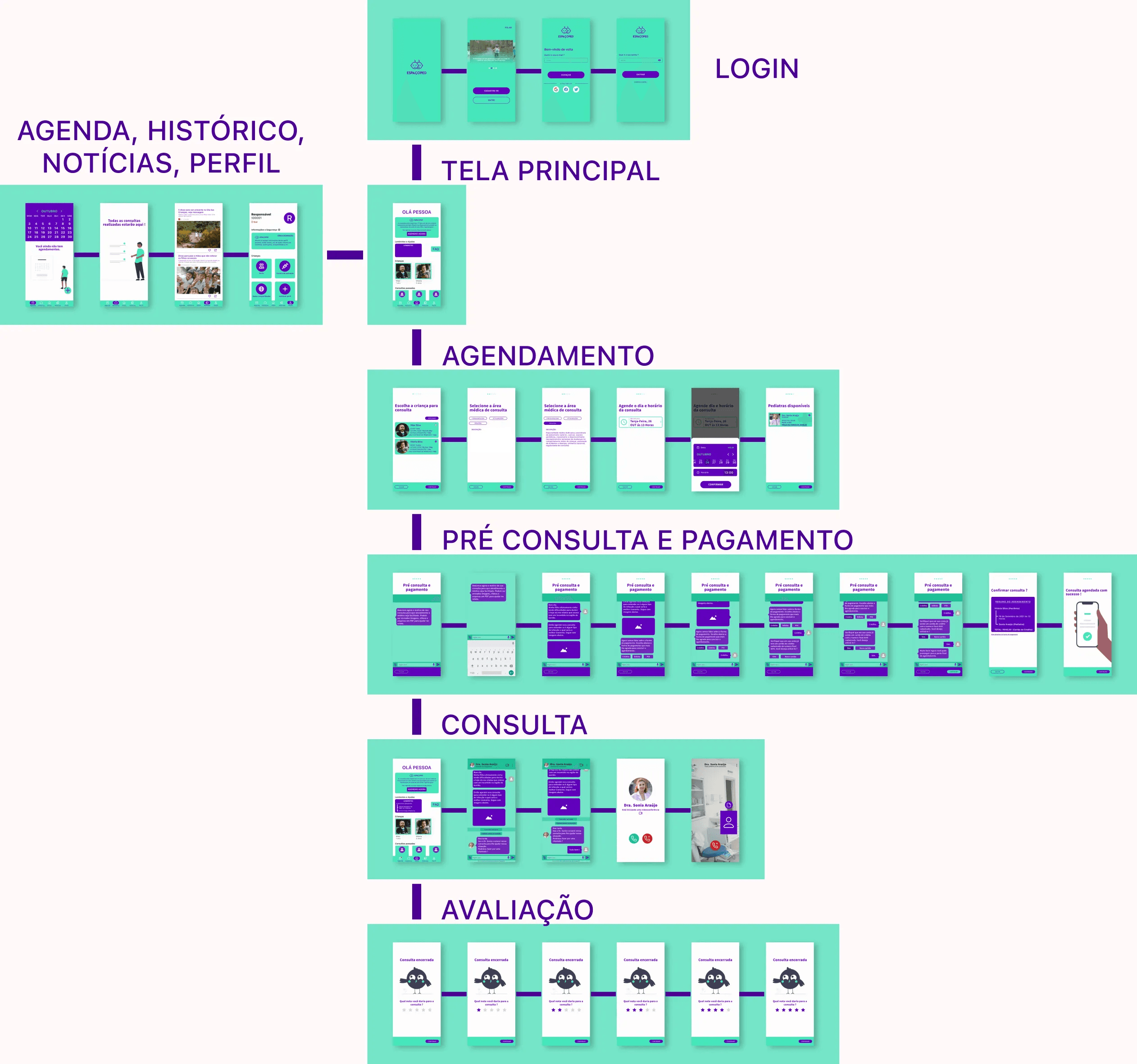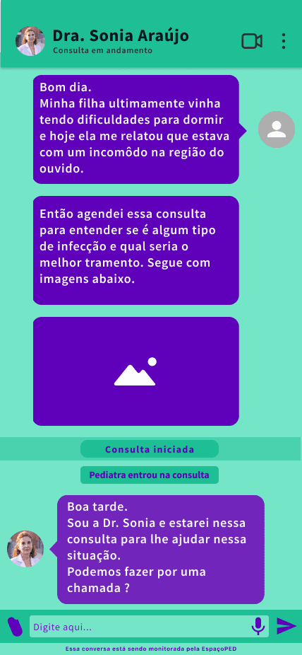 Apresentei uma solução de aplicativo voltado para mães e pais de crianças, um aplicativo desenhado com a proposta de ser simples e semelhante a outros aplicativos (fora telemedicina) que esse público já costuma utilizar no dia a dia.