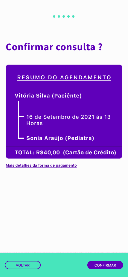 Necessidade de uma tela de resumo antes de confirmar o agendamento da consulta