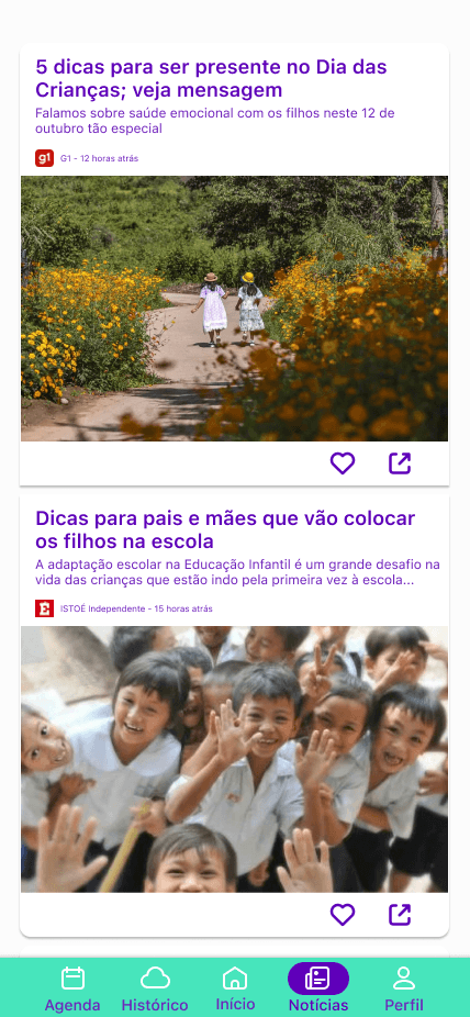 Alto Impacto: Em época de pandemia, existem inúmeras fake news acerca do COVID-19 e principalmente se tratando de seus riscos na saúde infantil. Apesar de não ser o foco ou a proposta principal do aplicativo, essa seria uma boa forma de repassar boas informações aos pais em um momento como esse.