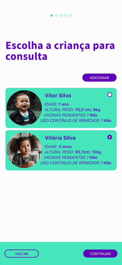 Médio Impacto: Função voltada para famílias com uma ou mais crianças. Dessa forma, as informações de seus filhos ficarão salvas diretamente em uma só conta, facilitando o agendamento de consulta por parte da família.